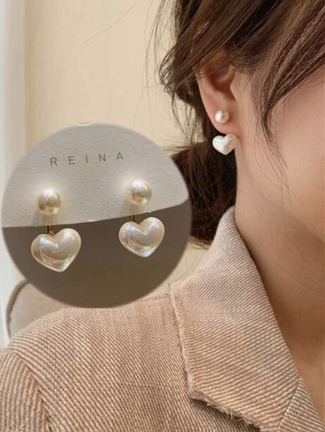 立体的なパール風ハートが印象的!まるで耳たぶの下にハートが浮いているように見えるキュートなピアスです。
