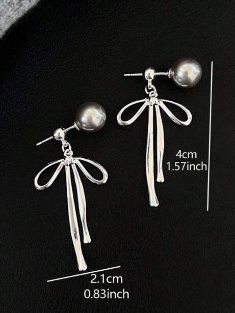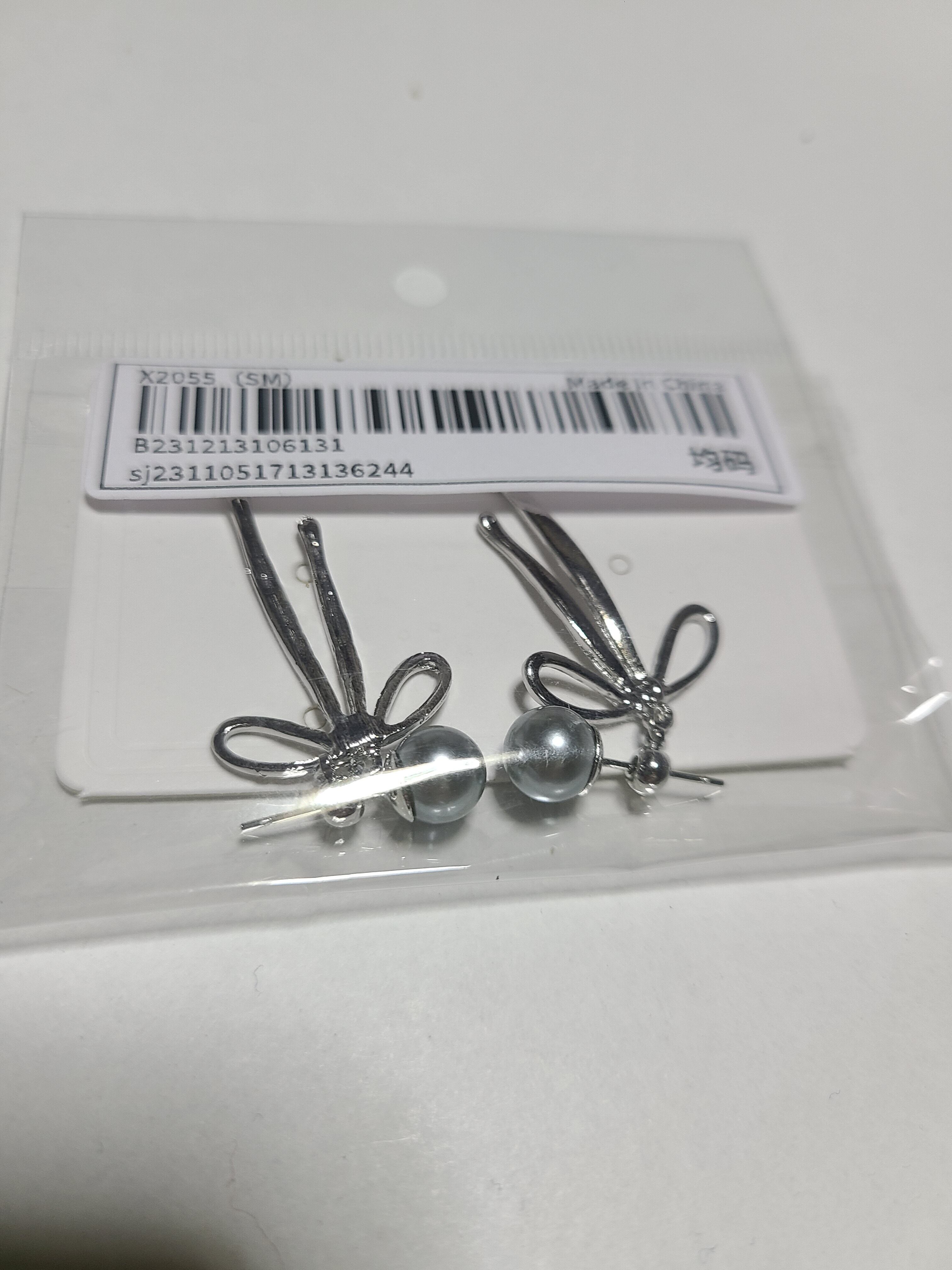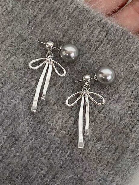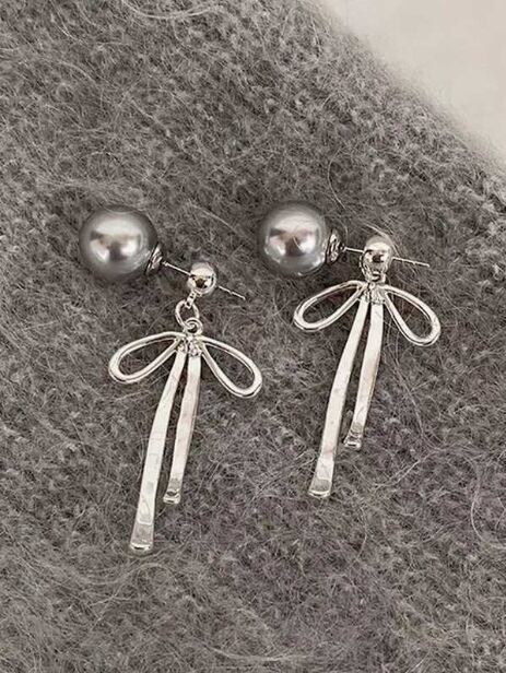 長さ不揃い リボン ブラックパール風 ピアス | chaosseed69